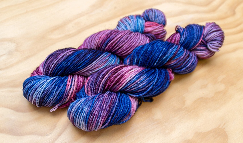 Blueberries showcase so many different shades of blue and purple and those little berries are a beautiful source of color inspiration any time of the year. In this post, we will be using three different colors of RIT dye on MARSHMALLOW WORSTED to layer a beautiful purple-y blue colorway inspired by berries. RIT dye is a great dye to use if you are just getting started because you can find it at your local craft store, and it comes in premixed bottles where a little goes a long way! To get these colors, we will use just three and a half tablespoons of dye overall leaving you with plenty more dye for continued experimentation. Let’s get started!