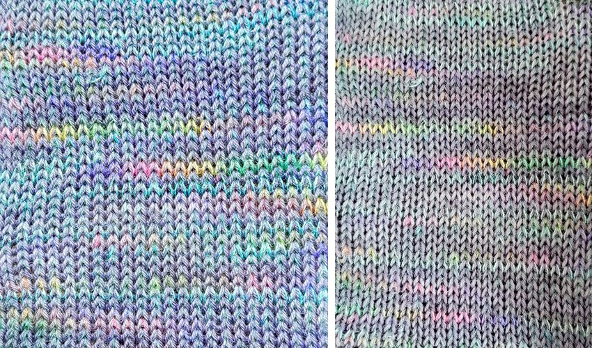 Here’s our darker grey paired with the rainbow painted mohair: