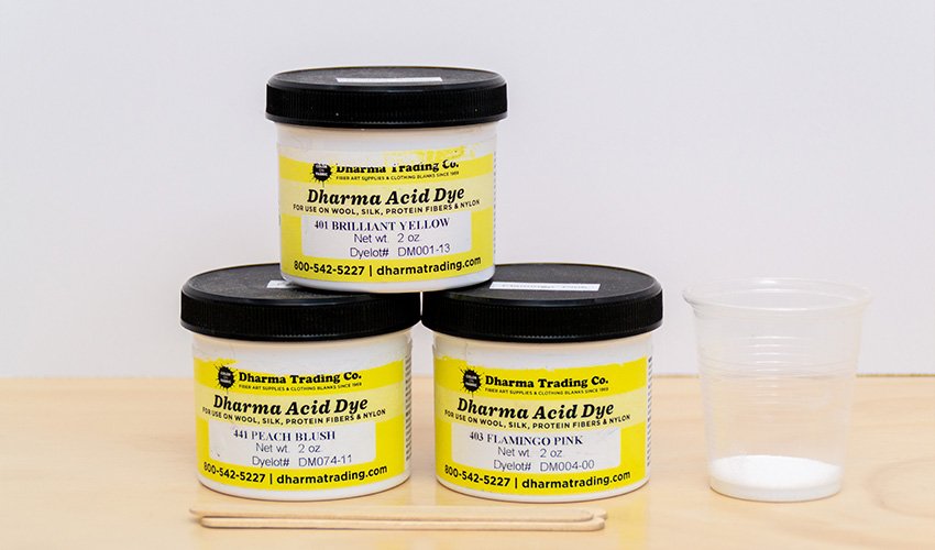 Dharma acid dye in Brilliant Yellow, Peach Blush, and Flamingo Pink