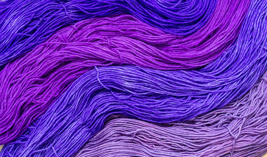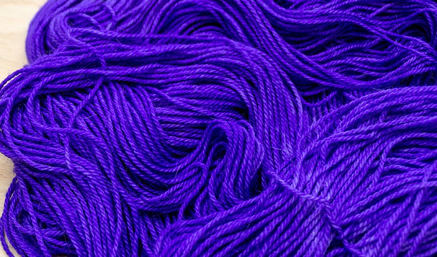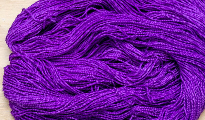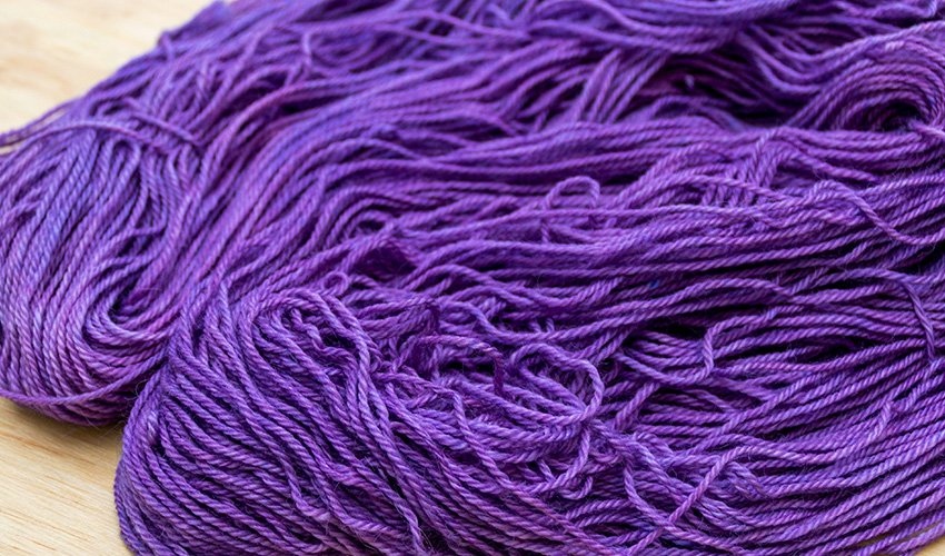 Purple is one of my favorite colors to work with! I primarily use my dyed yarn for embroidery work, but I do crochet and knit for fun on occasion too. When I am making things just for fun, I always find myself drawn towards shades of purple. Figuring out which purple is best can sometimes be a challenge. Some shades of purple lean more red or warm-toned and others are more blue or cool-toned. Purple can also be a tough color to dye evenly as the different pigments in the acid dye can lead to striking, or the colors splitting in the dye bath and absorbing unevenly into the yarn. Well, today on the blog we are going to color all things purple! We will go over how to dye up a solid skein through immersion dyeing for a perfectly even color and dye four different shades of purple as examples. Let’s get started!