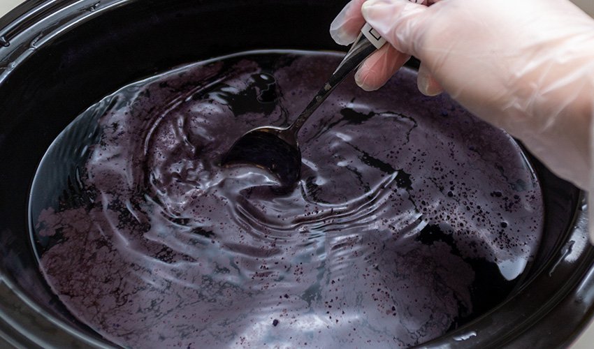 Remember to always wear a respirator and gloves when working with dye powders and that any tools used for dyeing are no longer food safe and should be reserved exclusively for dyeing.