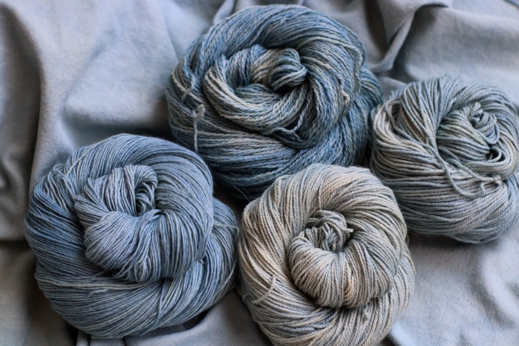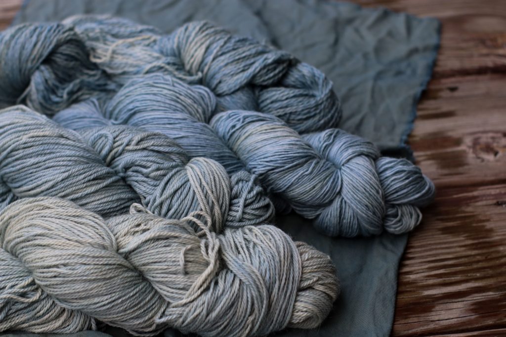 At first, your yarns might look a little more dull than you expected. The rinsing stage does wonders to transform dusty blues into brighter ones! Use fresh water and gently rinse your yarns until the rinse water bath is clear (you’ll see murky, cloudy water until you hit that point). Do a final rinse with some wool wash, then hang to dry.