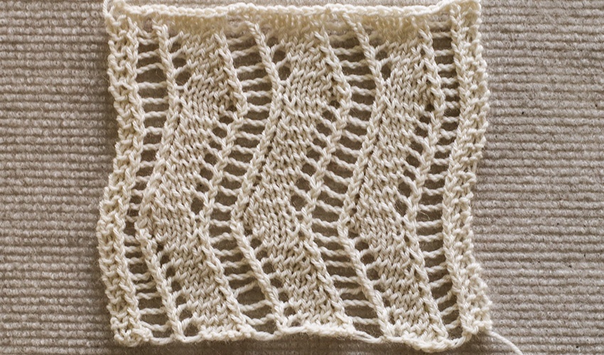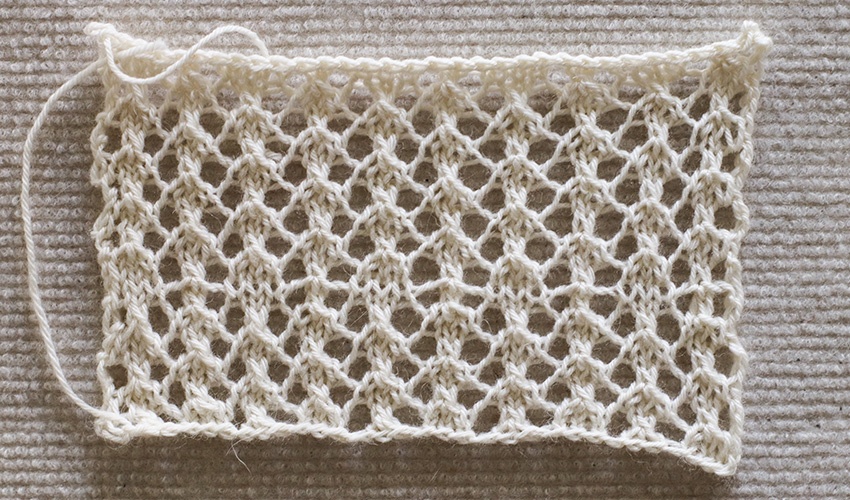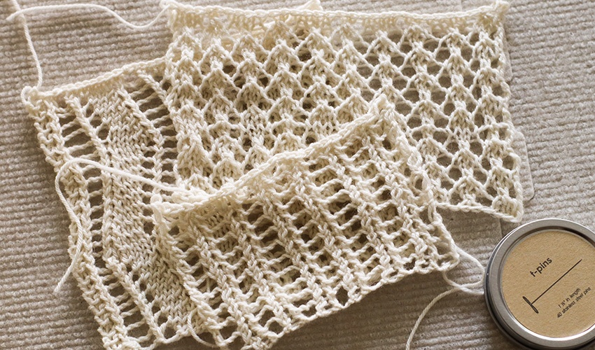 Combined together, Ivory is a luxury yarn for luxury yarn lovers, and if you’re a brand that prefers to err on the side of soft, this might be a great one to bring into your line–especially if your knitters love lace. To celebrate this delicate, exquisite yarn, only lace stitches seemed appropriate, so I chose three and worked them up to see how well this yarn swatched and blocked.