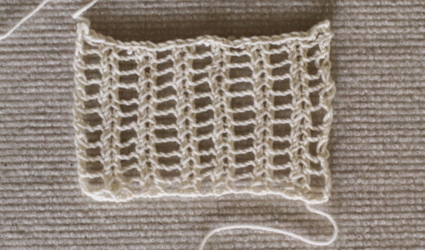 Row 3: K1, *yo, sl2, k1, pass both slipped stitches over, yo, k3* repeat from * to *, k1.