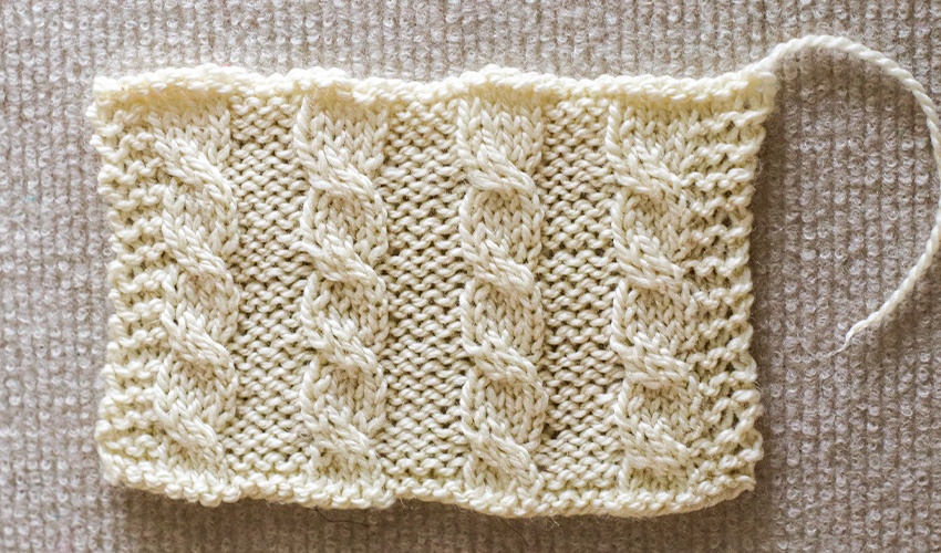 Sometimes, simple cables are perfect for a yarn that doesn’t have quite enough definition (or plies) to show off more complex ones. Save your fancy Celtic knots for a nice rounded yarn, and let flatter 2-ply yarns like Prism shine with a cable that gives a lot of face. This simple 4-stitch cable is set on a background of plain Reverse Stockinette stitch that makes it a breeze to knit. This is also the perfect cable to try if you’ve never worked a cable without a cable needle before.