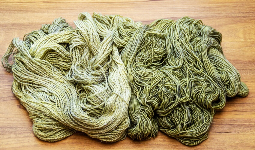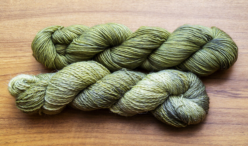 The lighter shade of green really shows off the different textures of EGRET and BRISTLE. Share your dyed skeins with us on social media using the hashtag #knomad_yarn. We can’t wait to see what you make!