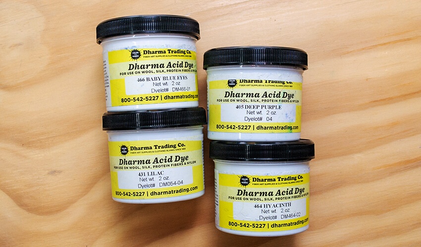 • Hyacinth, Baby Blue Eyes, Deep Purple, Lilac acid dyes by Dharma