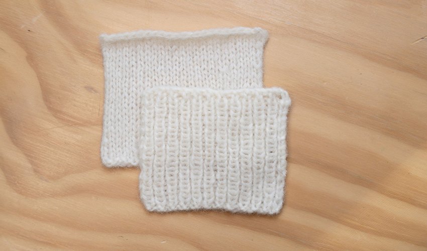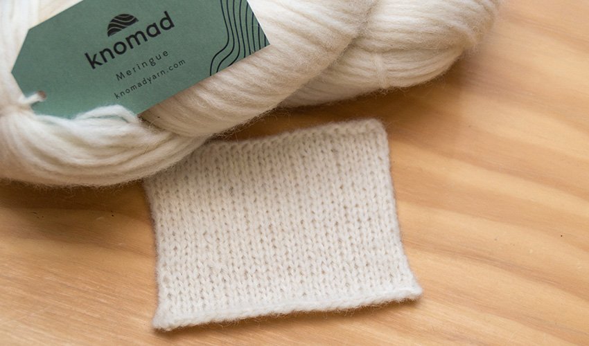 This pattern will be a great project if you want to learn how to create gussets and work on left and right increases and decreases. Here we have swatched some of our Meringue yarn in the stockinette stitch.