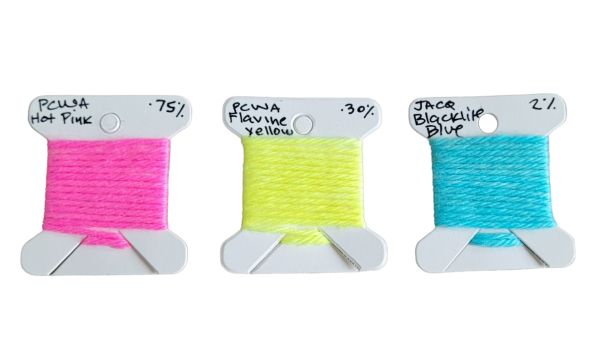 Our Goal: To test the new Jacquard blacklight blue and observe the saturation point for 3 fluorescent dyes so we can build a balanced triad dye study in Part 2.