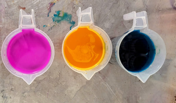 -Acid-Reactive Dye from Pro Chem Washfast acid in Hot Pink, Flavine Yellow and Jacquard Blacklight Blue