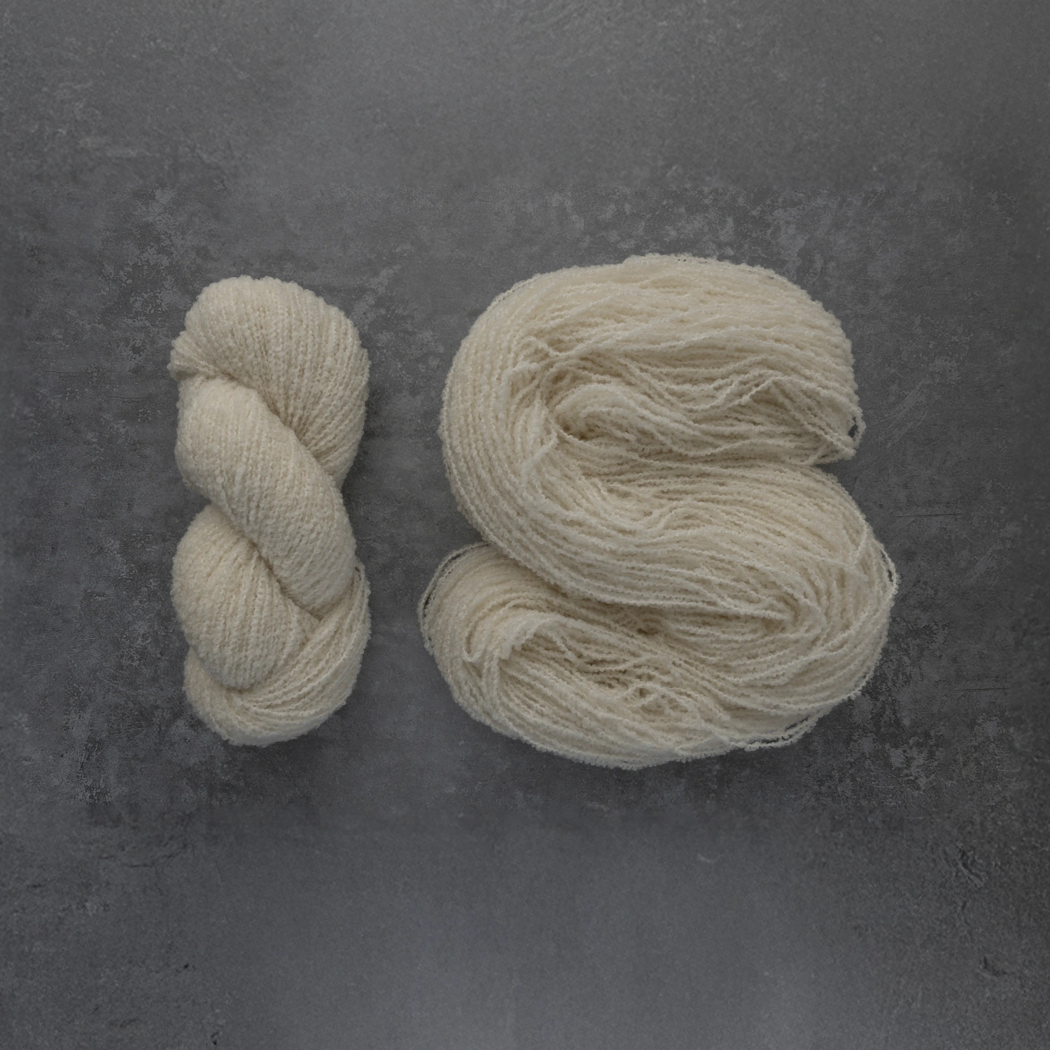 Ivy is a textural marvel, just like its namesake! While many bouclé yarns have a thin nylon core, Ivy’s 100% superwash merino core has a little more heft, which makes the knitting experience much more pleasing to the hand. Extra fine merino makes Ivy super soft to the touch. Ivy has a unique texture. It is curly and crimped, but also puffy in an organic way, like puffed rice. Ivy is made for fashion forward garments where only a truly special yarn is appropriate. This easy to dye base adds novelty and fun to your dyeing line up. We’re sure it’ll become an instant classic!